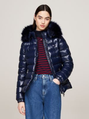 Faux Fur Hood Down Puffer Jacket Blue Tommy Hilfiger Very well made.