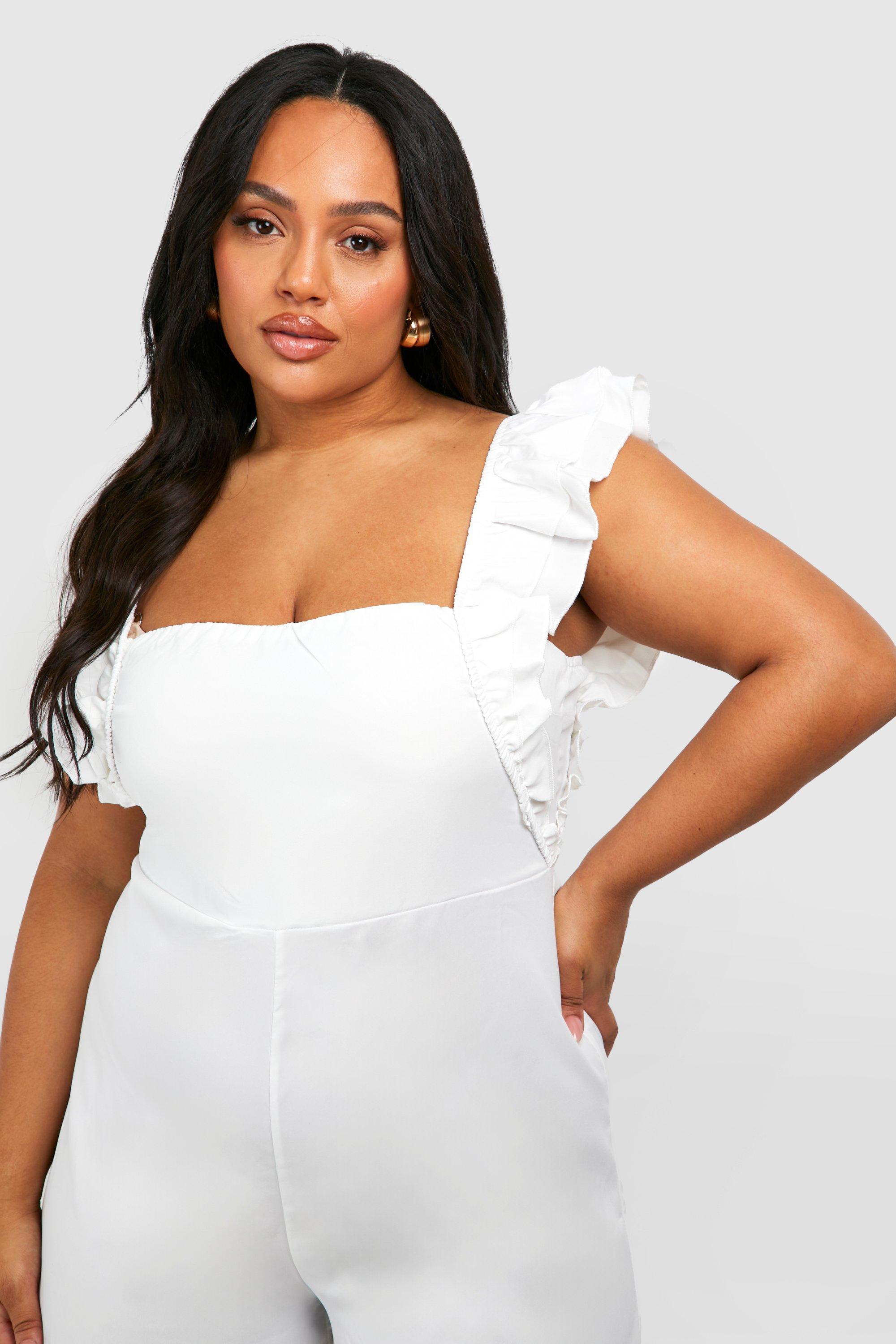 Plus Woven Ruffle Playsuit boohoo Very well made.