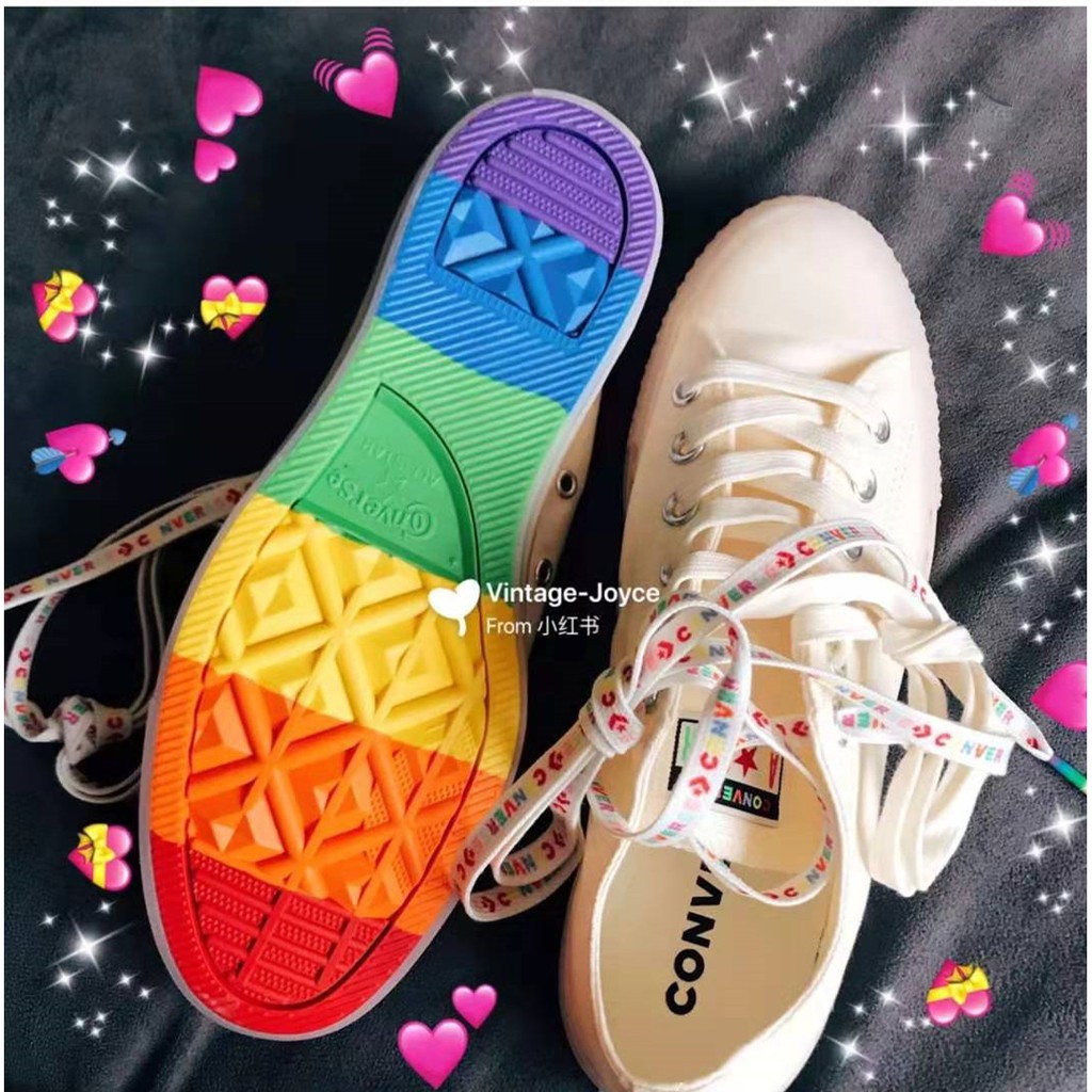 CONVERSE genuine Converse ALLSTAR classic white rainbow low top men s and women s same canvas 165613C Very well made.