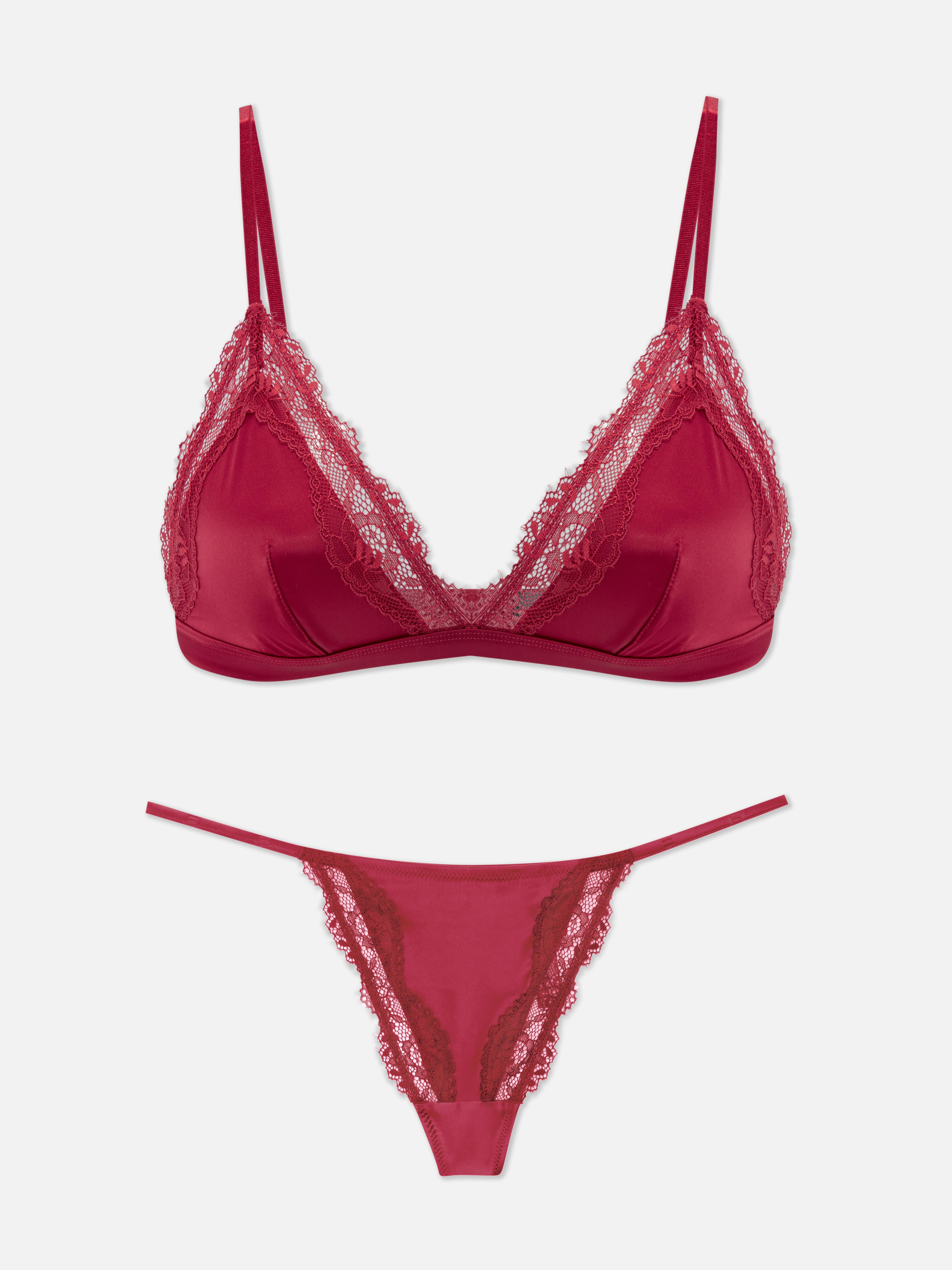 Bralette a triangolo e perizoma in raso e pizzo Rosso Donna Primark Very well made.