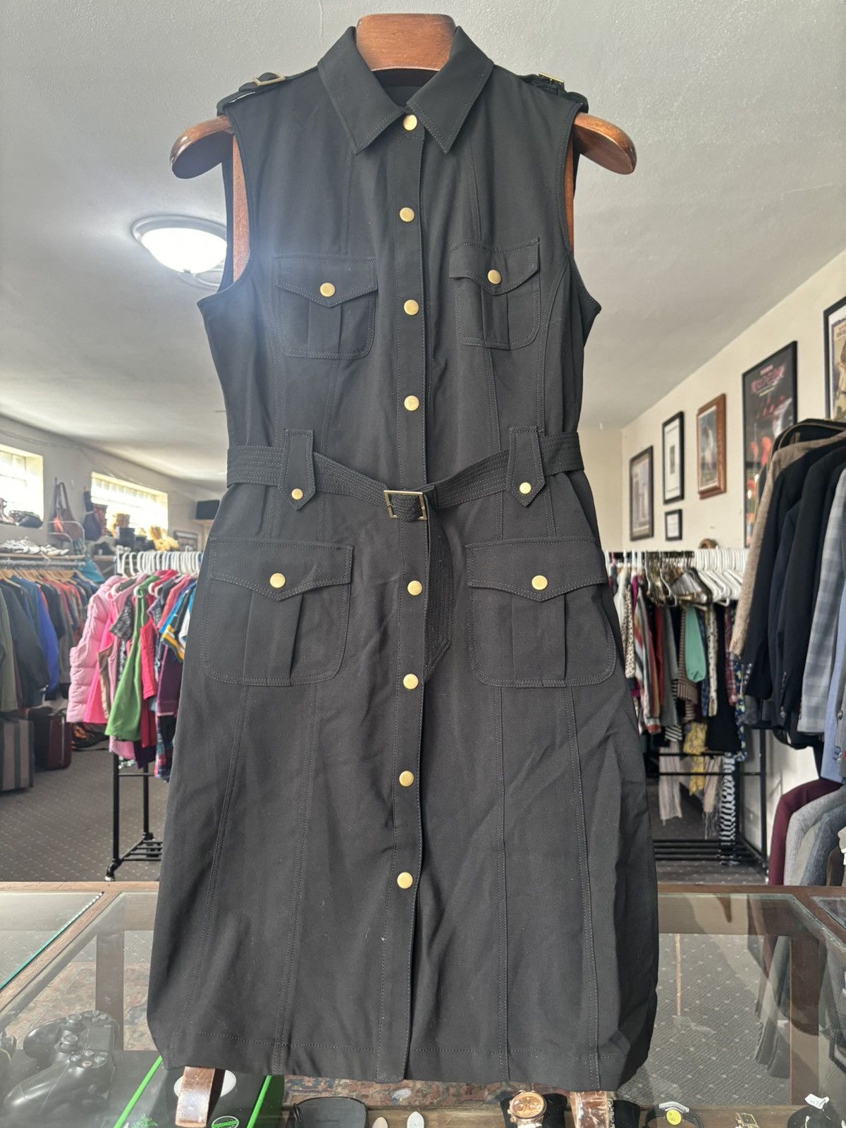 SMALL CK Black military style trench coat dress Very well made.