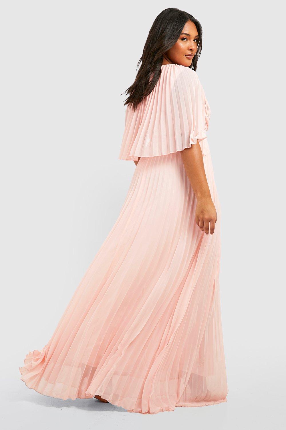 Plus Bridesmaid Pleated Cape Maxi Dress boohoo Very well made.