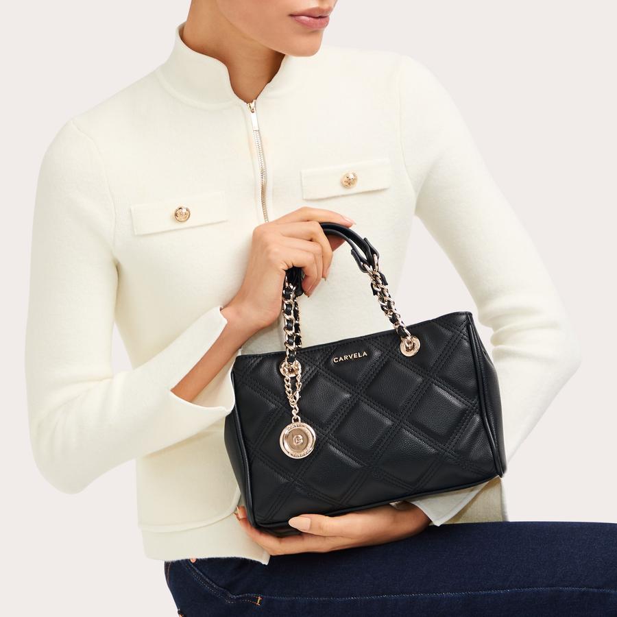 FRAME MINI TOTE Patent Black Tote Bag by CARVELA Very well made.
