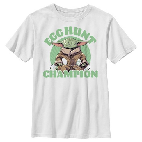 Boy s Star Wars The Mandalorian Easter Grogu Egg Hunt Champion T Shirt White Large Very well made.
