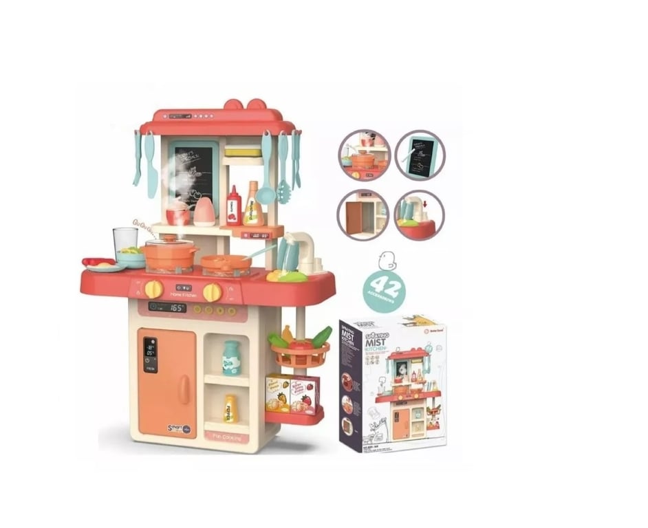 Cocina De Juguete Con Vapor Accesorios Estilo Moderno Rosa Very well made.