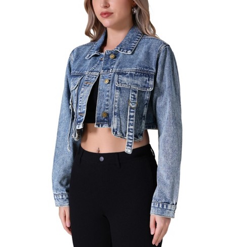 Allegra K Women s Turn Down Frayed Button Down Washed Cropped Denim Jacket Black Small Target Very well made.