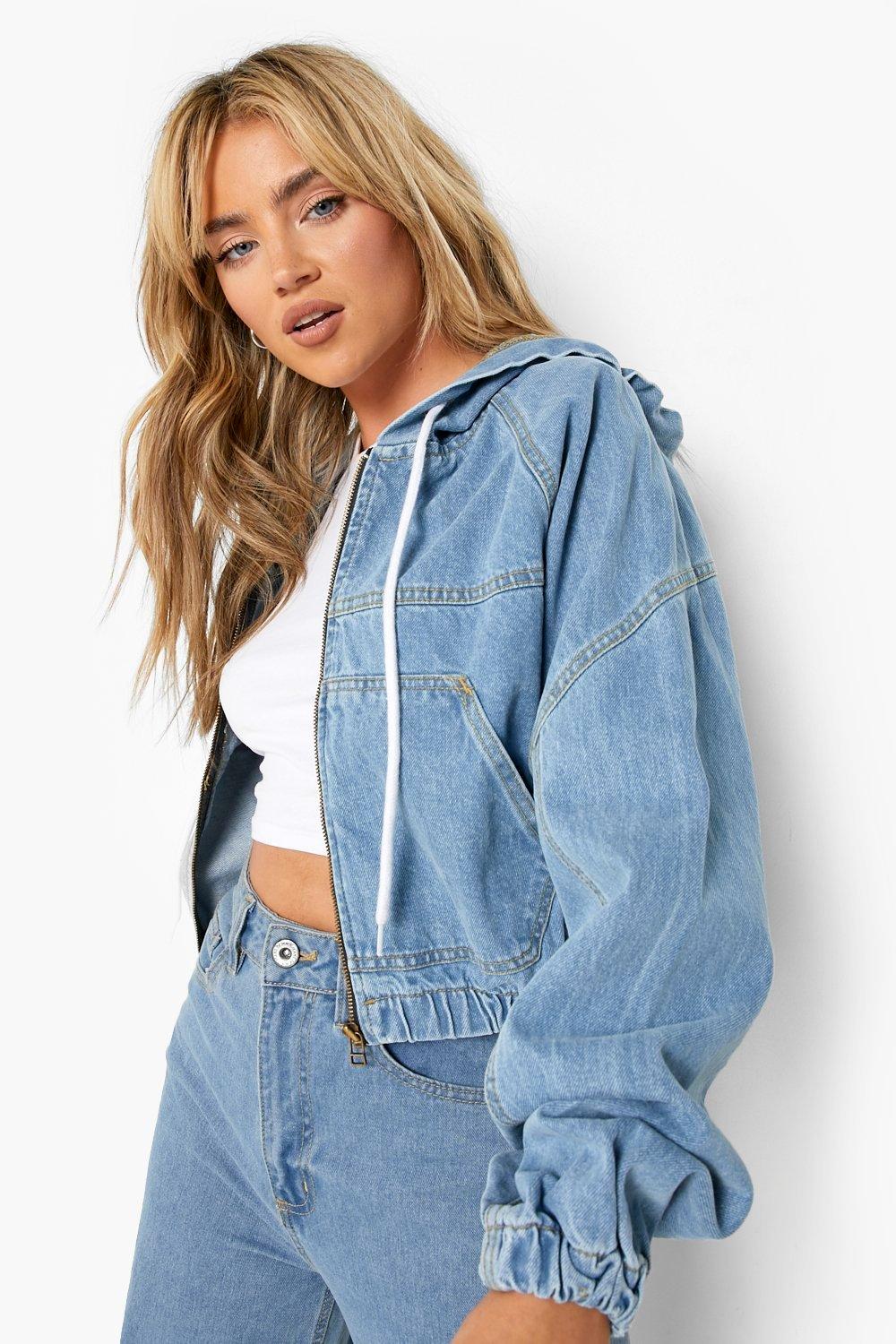 theSimple Women s Cropped Layered Hoodie Denim Jean Jacket Very well made.