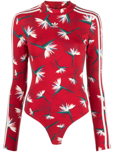 Adidas Originals Logo print Floral Bodysuit In Red ModeSens Very well made.