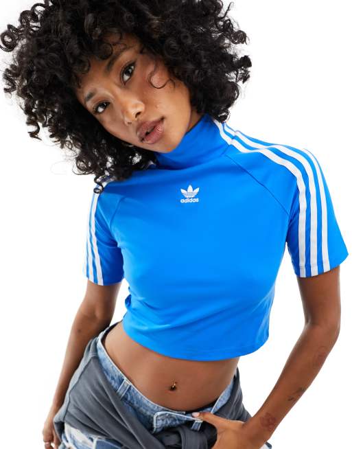 adidas Originals three stripe high neck crop top in blue Very well made.