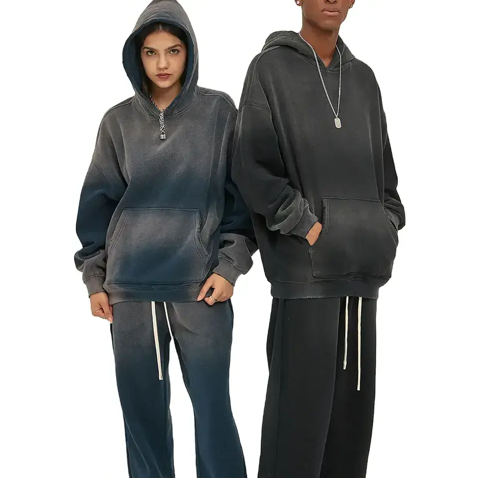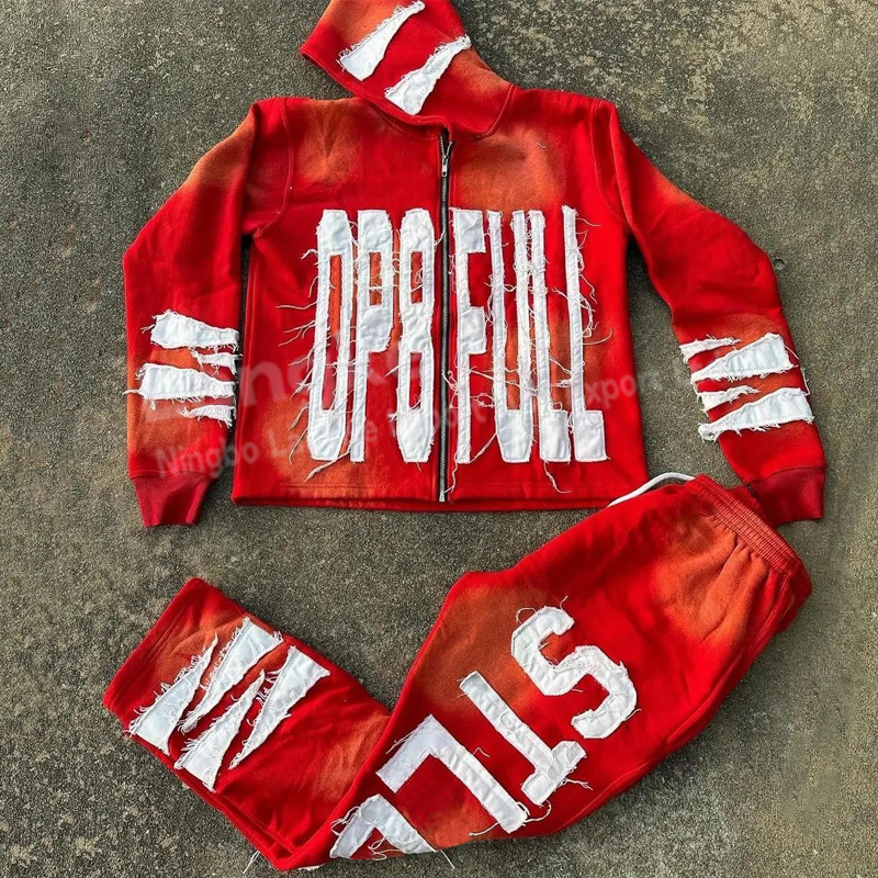 Custom Acid Wash Sun Faded Distressed Embroidery Patch Unisex Sweatsuits Zip Up Sweatpants and Hoodie Set BestSuppliers Very well made.
