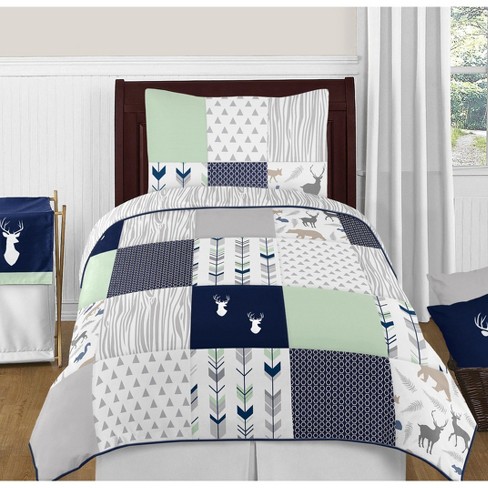 Sweet Jojo Designs Gender Neutral Unisex Twin Comforter Bedding Set Woodsy Blue Green Grey 4pc Target Very well made.
