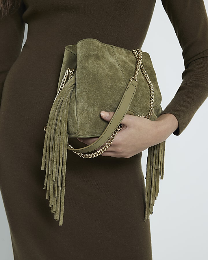 Green Suede Fringed Cross body bag River Island Very well made.