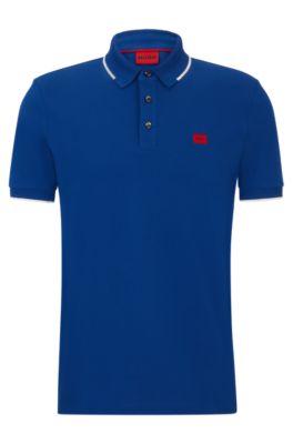 HUGO Cotton pique slim fit polo shirt with logo label Dark Blue Very well made.