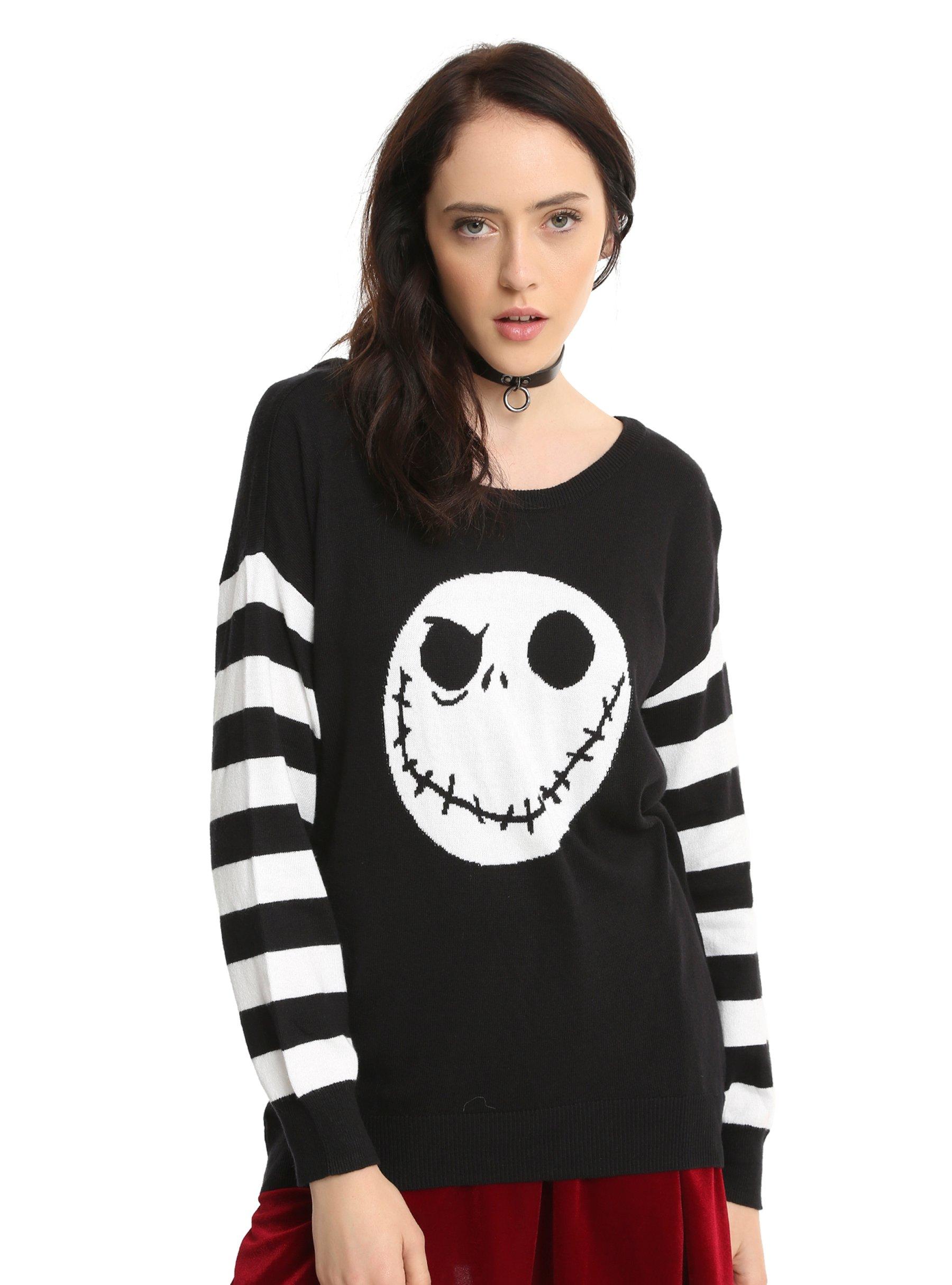 The Nightmare Before Christmas Jack Skellington Striped Sleeve Girls Sweater Hot Topic Very well made.