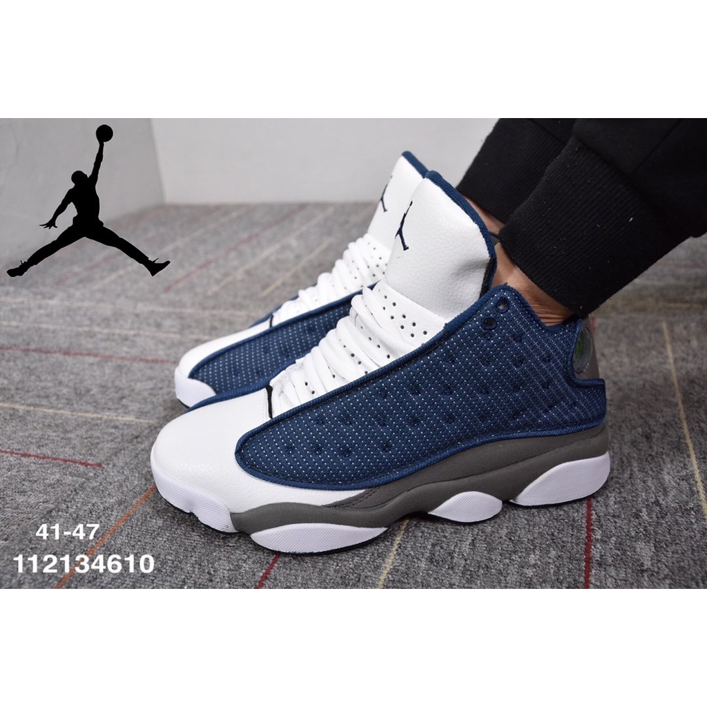 Zapatos De Moda air jordan 13 retro high top Baloncesto Holografico Gato Ojos panda suede Pegamento Resistente Al Desgaste Antideslizante Azul Blanco Very well made.