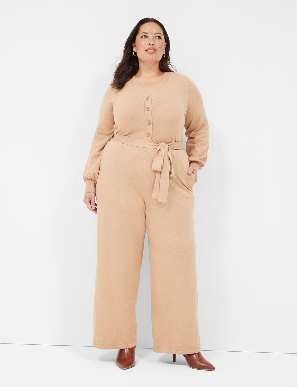 Button Front Wide Leg Sweater Jumpsuit LaneBryant Very well made.