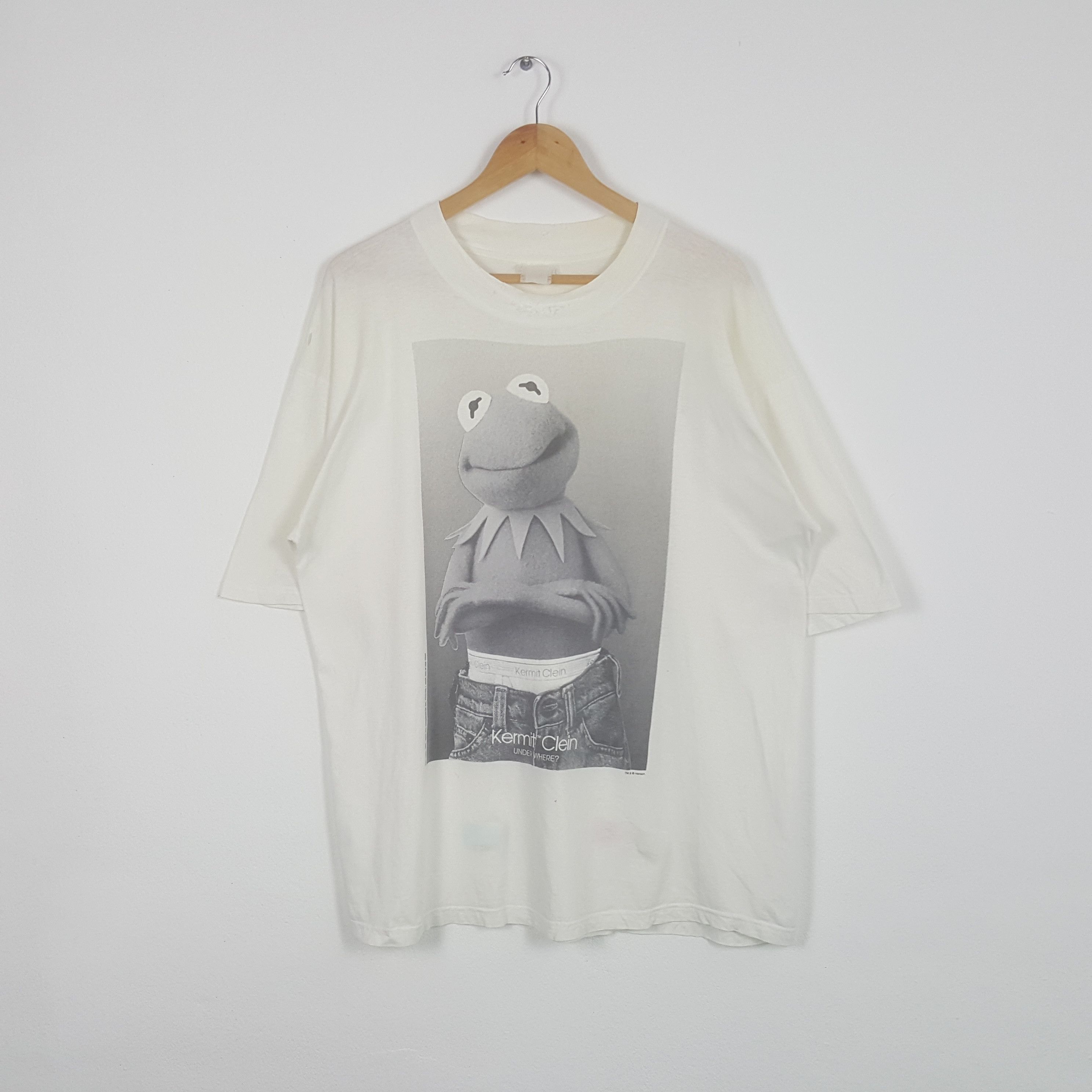 Vintage Kermit Clein T shirt 90s White Jim Henson Muppets Calvin Klein parody XL Very well made.
