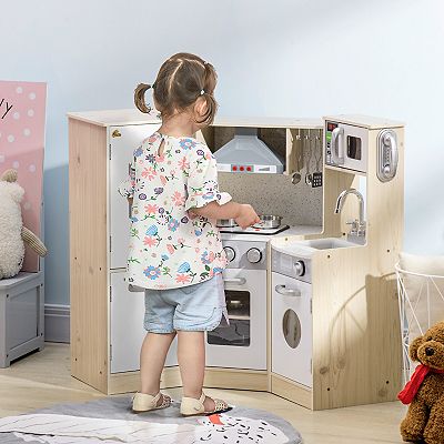 Qaba Ultra Big Corner Kids Kitchen Playset With Sound Effects Wooden Very well made.
