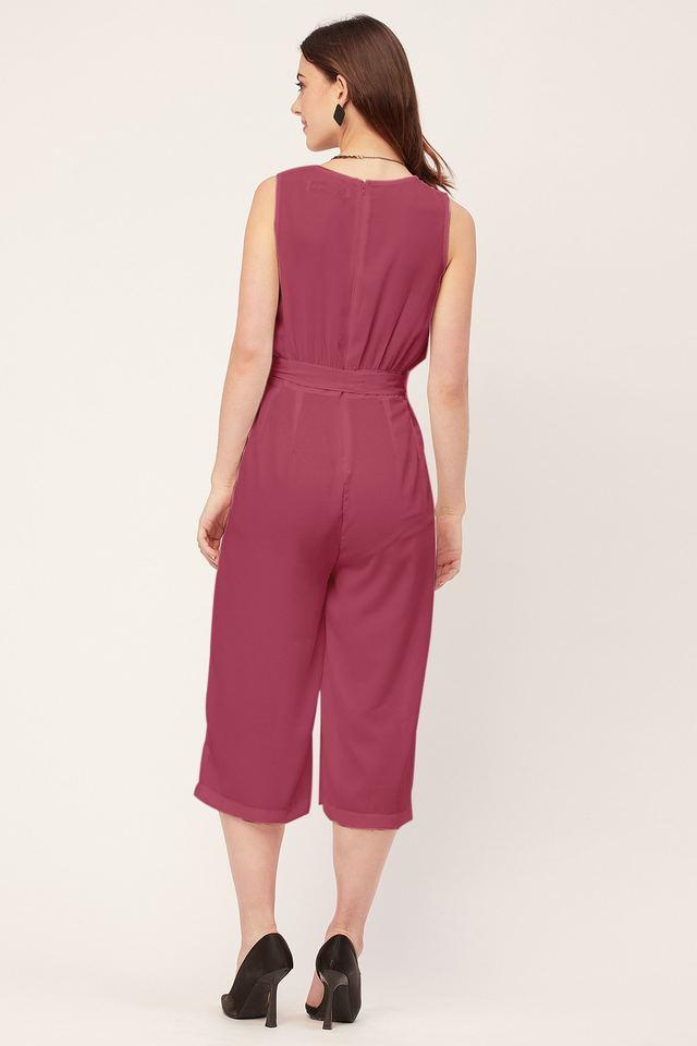 Buy MOOMAYA Pink Solid Sleeveless Georgette Women s Knee Length Jumpsuit Shoppers Stop Very well made.