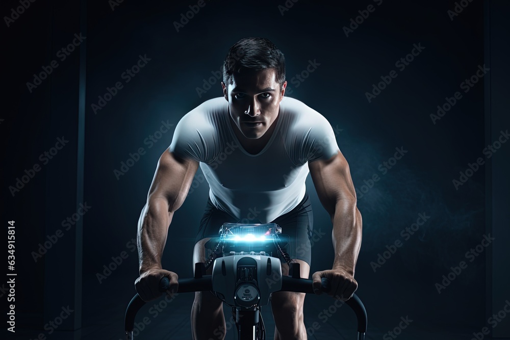 Poster Affiche Young man during workout on a smart exercise bike 40x26.7 cm Very well made.