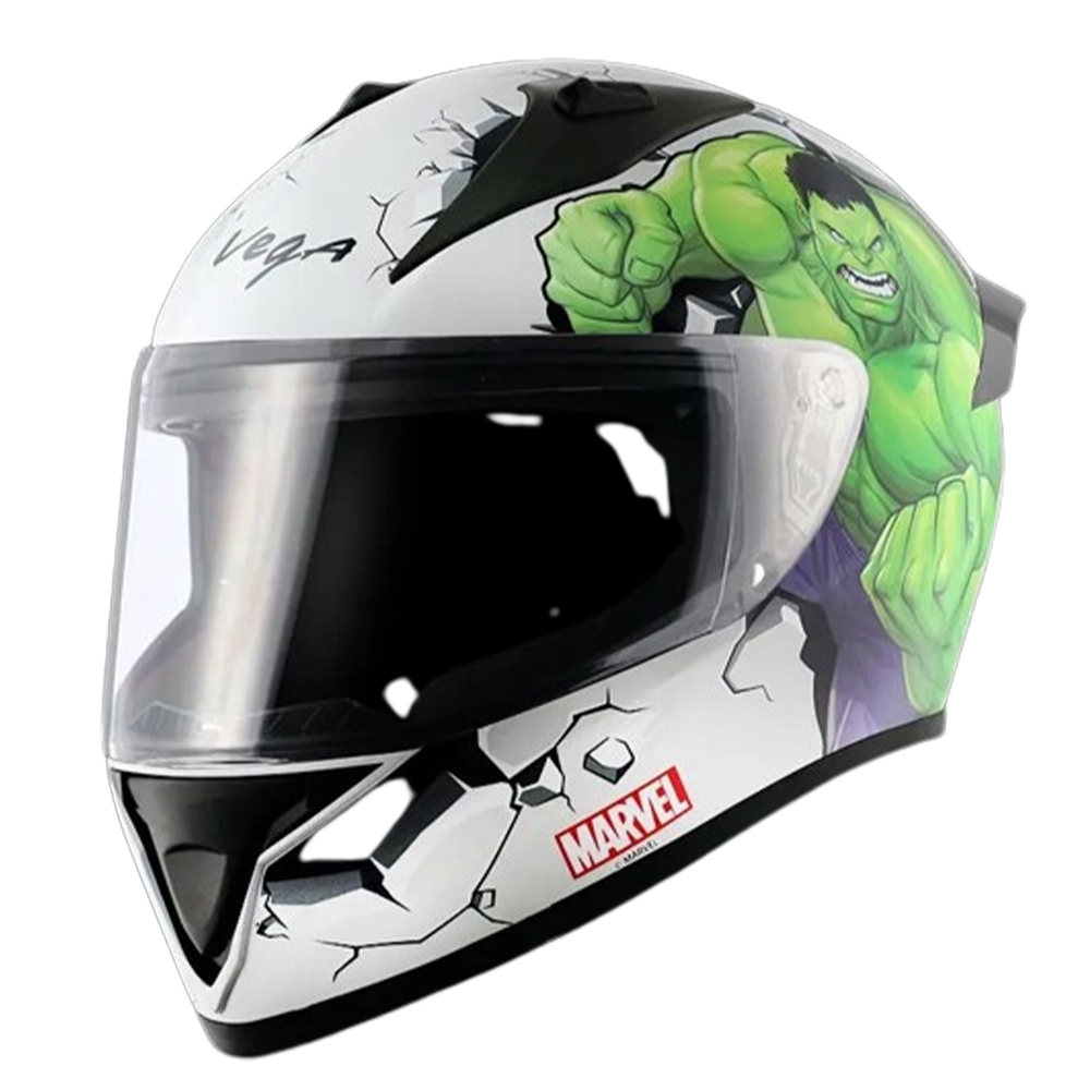Vega Bolt Marvel Full Face Bike Helmet Green and White Very well made.