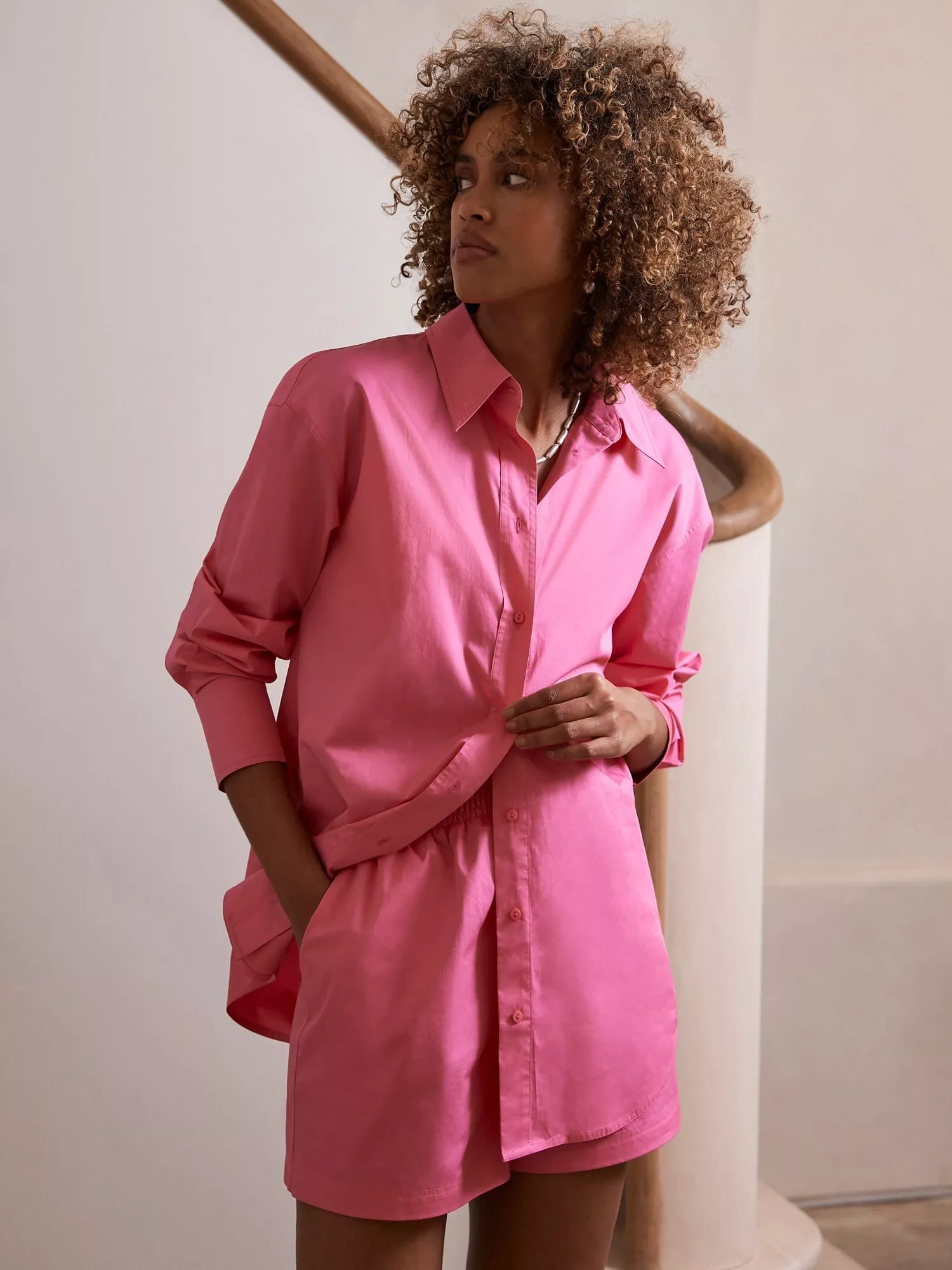 Mint Velvet Cotton Shirt Short Co ord Set Pink Very well made.