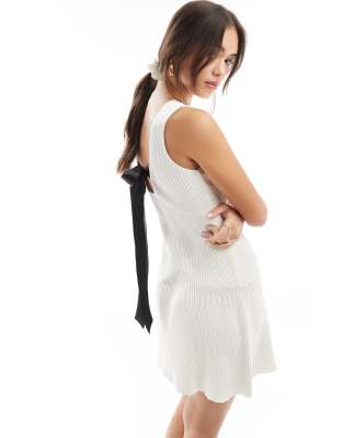 Miss Selfridge contrast satin bow back detail sleeveless knit mini dress in cream White 20.00 Grazia Very well made.