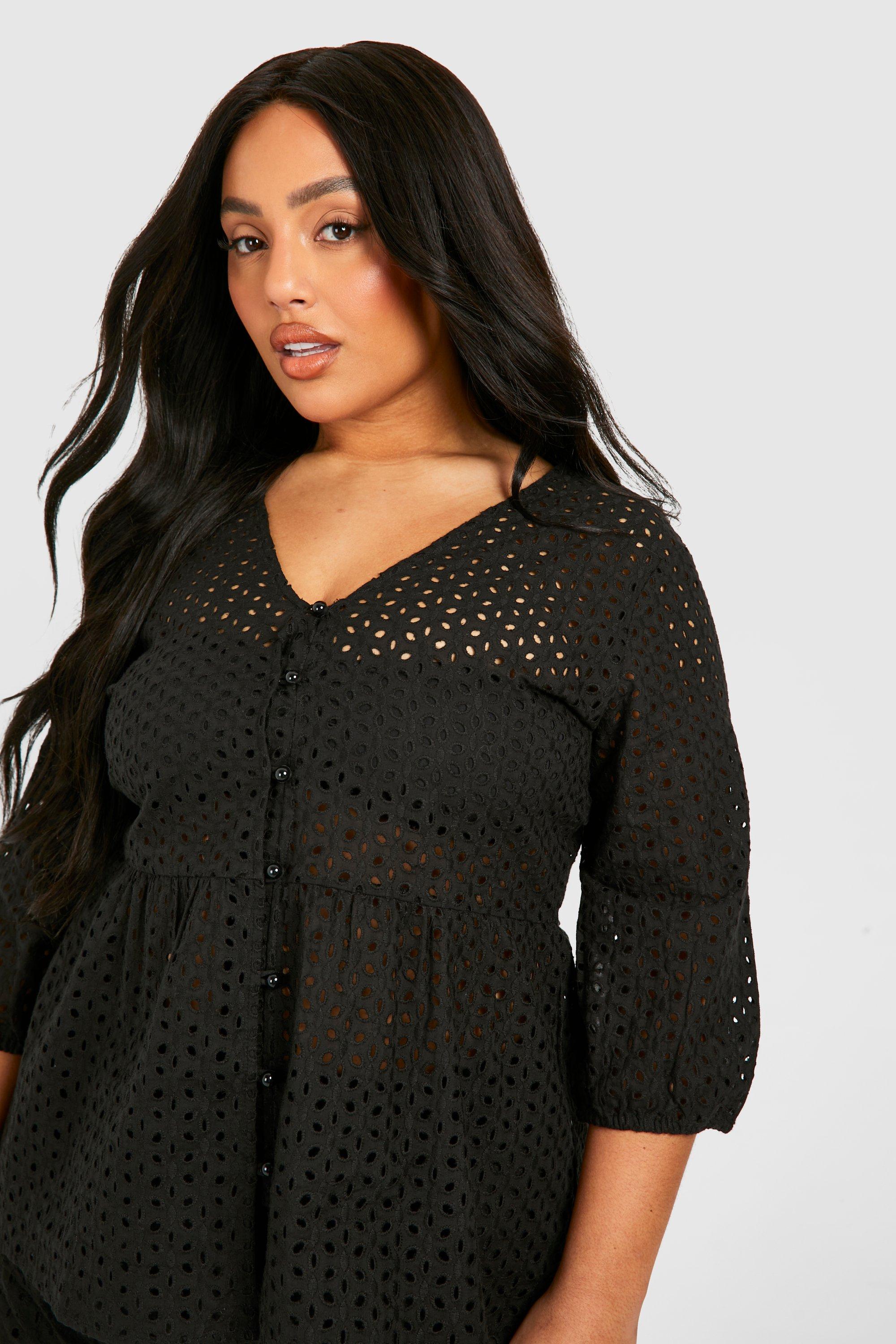 Black Plus Broderie Puff Sleeve Smock Top Very well made.