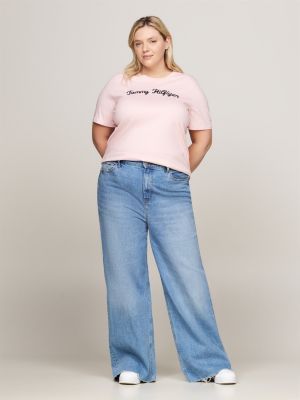 Curve Logo Embroidery T Shirt Pink Tommy Hilfiger Very well made.