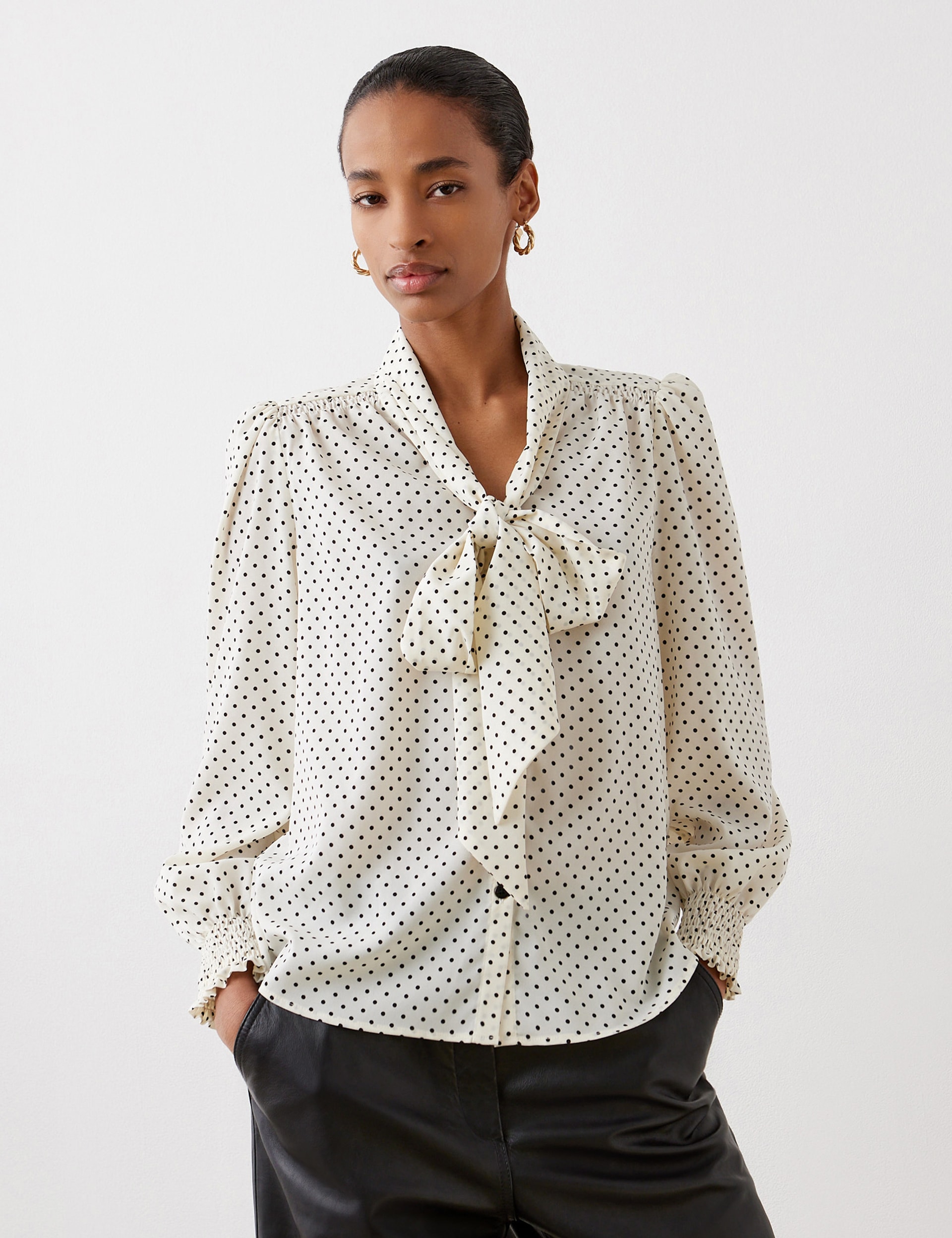 Crepe Polka Dot Tie Neck Blouse Finery London M S Very well made.