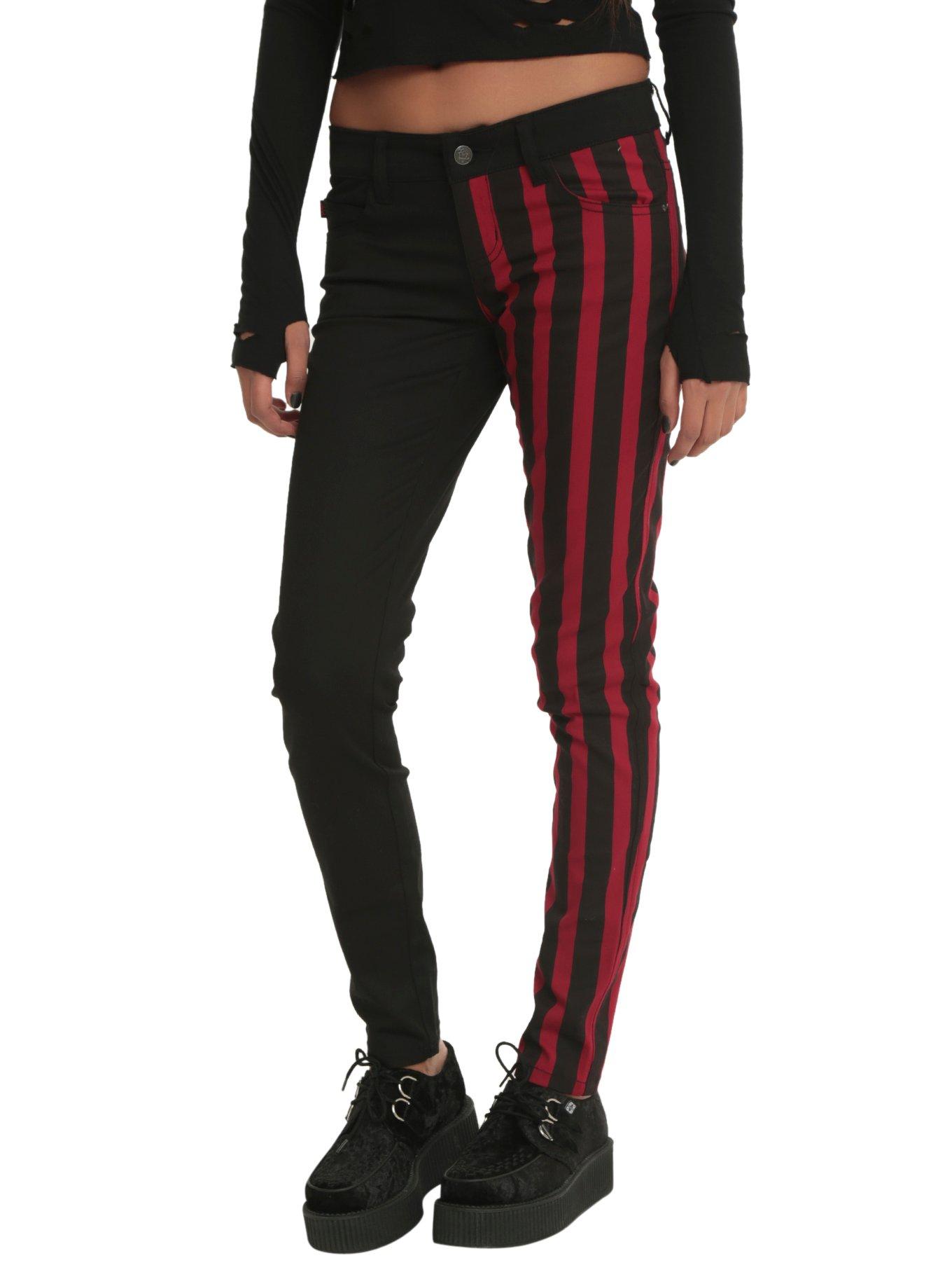 Royal Bones By Tripp Red Black Stripes Split Leg Skinny Jeans Hot Topic Very well made.