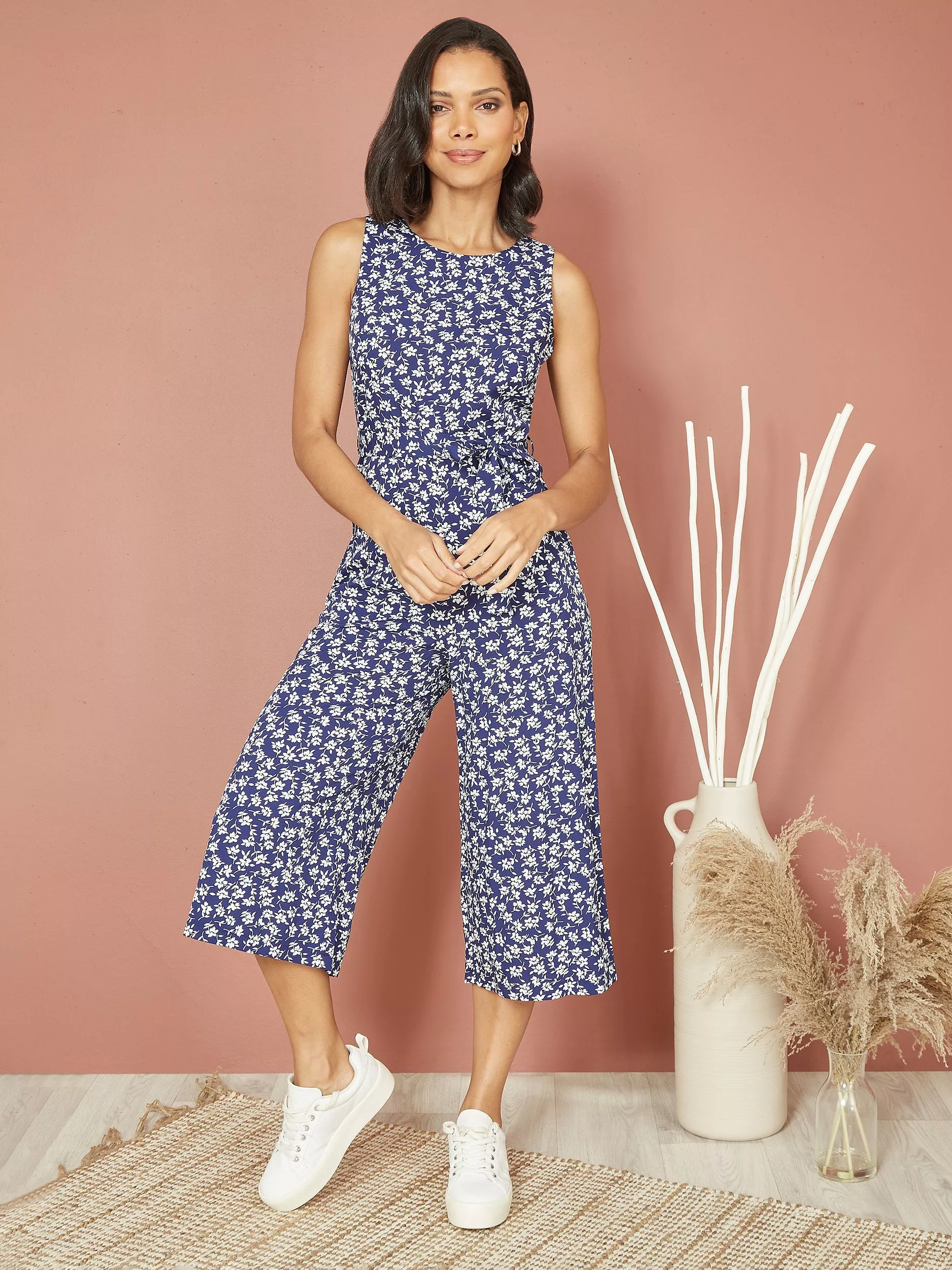 Mela London Ditsy Floral Print Sleeveless Culotte Jumpsuit Navy Very well made.