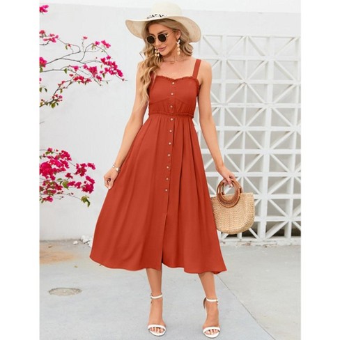 Whizmax Women s Dress Casual Summer Spaghetti Strap Dress Button Down Sleeveless A Line Beach Swing Midi Sundress Orange 2xl Target Very well made.
