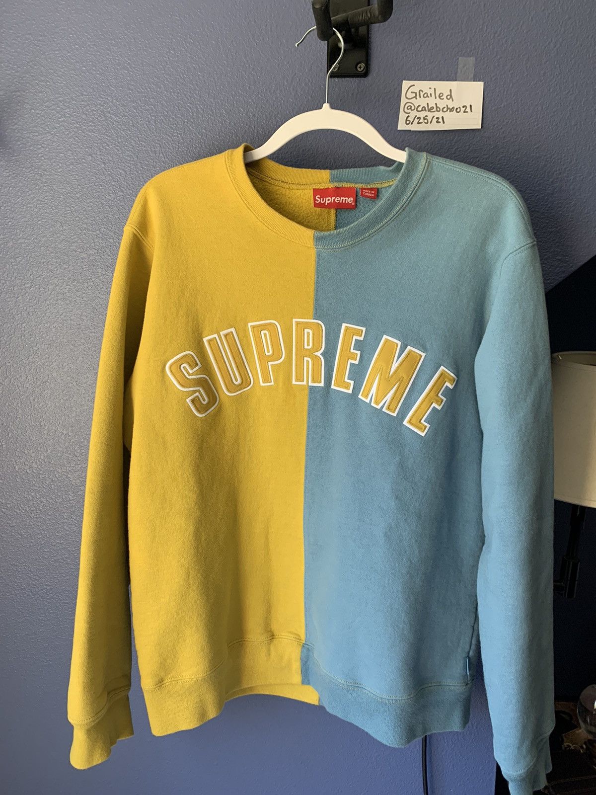 Supreme Supreme Split Crewneck Mustard Light Blue Grailed Very well made.