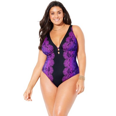 Swimsuits For All Women s Plus Size Deep V neck One Piece Swimsuit 8 Purple Ombre Lace Print Target Very well made.