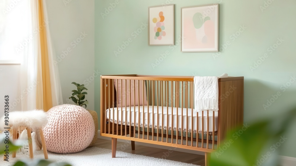Photo Art Print Midcentury modern nursery with teak crib soft colors and playful decor midcen ANNetz PK Very well made.