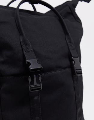 ASOS Unrvlld Supply Schwarzer Backpack aus Canvas mit Kunstlederboden und Logoaufnaher ASOS Very well made.