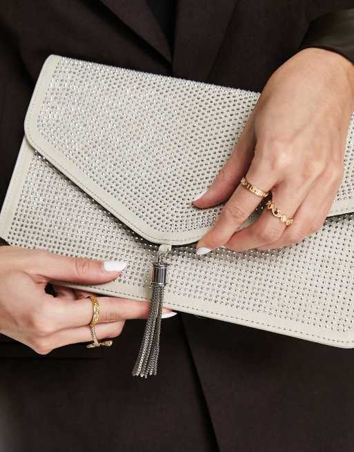 ASOS DESIGN Clutch mit Quastenverzierung und Strassbesatz in Silber ASOS Very well made.