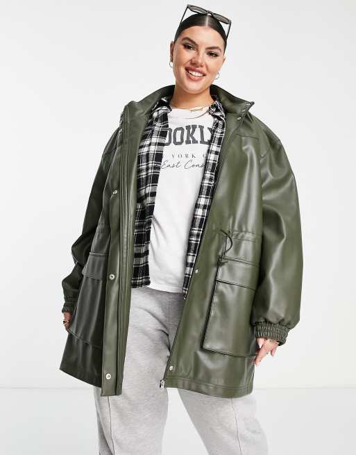 ASOS DESIGN Curve Parka Mantel aus Kunstleder in Olivgrun Very well made.