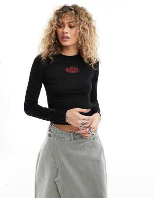 GUESS Originals Langarmliges T Shirt in Schwarz mit ovalem Logo ASOS Very well made.