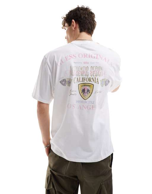 GUESS Originals Letterman Unisex T Shirt in WeiB mit Print auf Brust und Rucken ASOS Very well made.