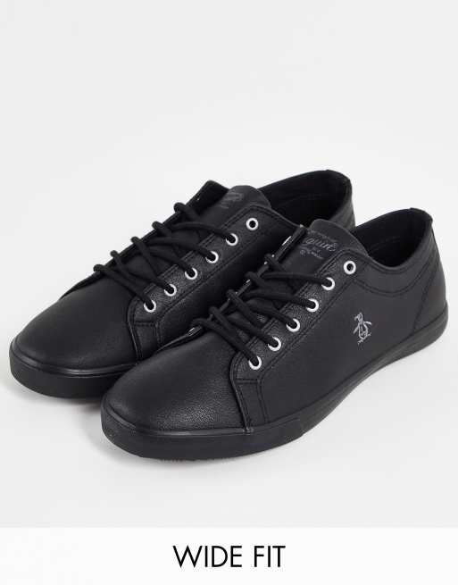 Original Penguin Wide Fit Sneaker mit Schnurung und dunner Sohle in Schwarz ASOS Very well made.