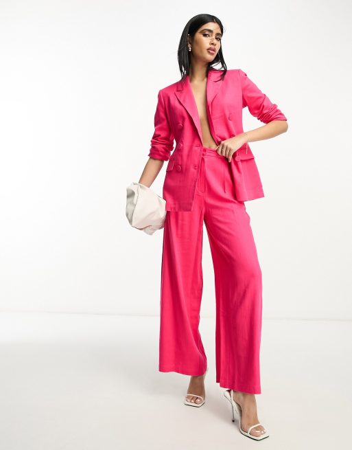 ASOS DESIGN wide leg suit pants with linen in hot pink Very well made.
