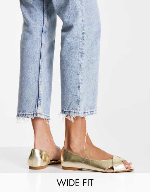 ASOS DESIGN Vale Peeptoe Ballerinas in Gold weite Passform ASOS Very well made.