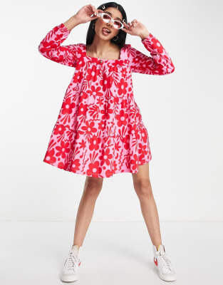 ASOS DESIGN mini smock dress with double tie detail in rose ASOS Very well made.