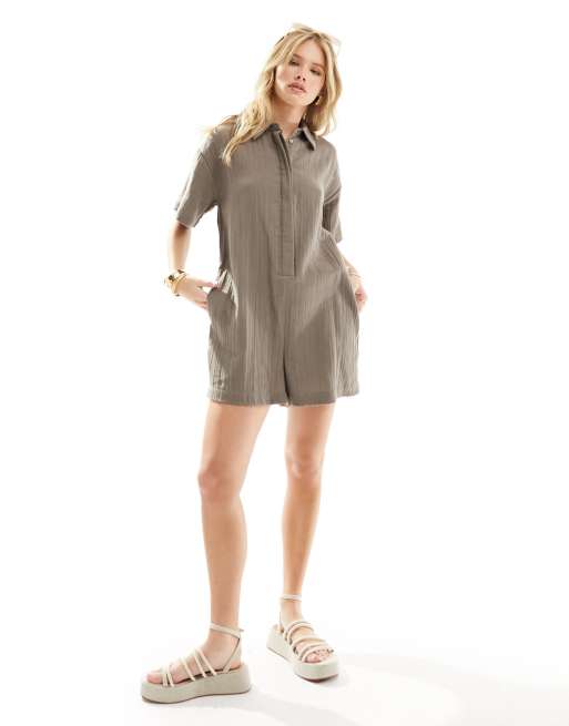 ASOS DESIGN Kurzer Playsuit in Anthrazit mit Hemdoberteil ASOS Very well made.
