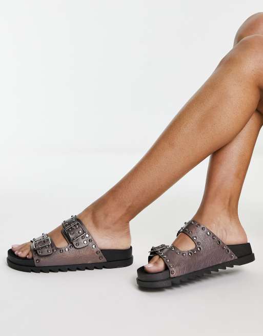 Sandalias planas color peltre metalizado con tachuelas Fantasy de ASOS DESIGN ASOS Very well made.