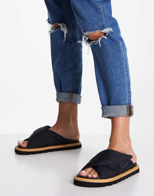 Sandalias planas negras con diseno acolchado Fibres de ASOS DESIGN ASOS Very well made.