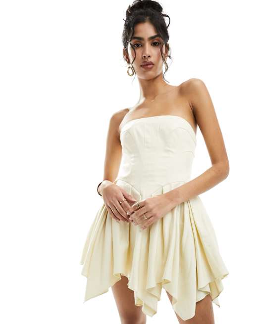 ASOS DESIGN structured bandeau mini dress with full skirt in ivory Very well made.