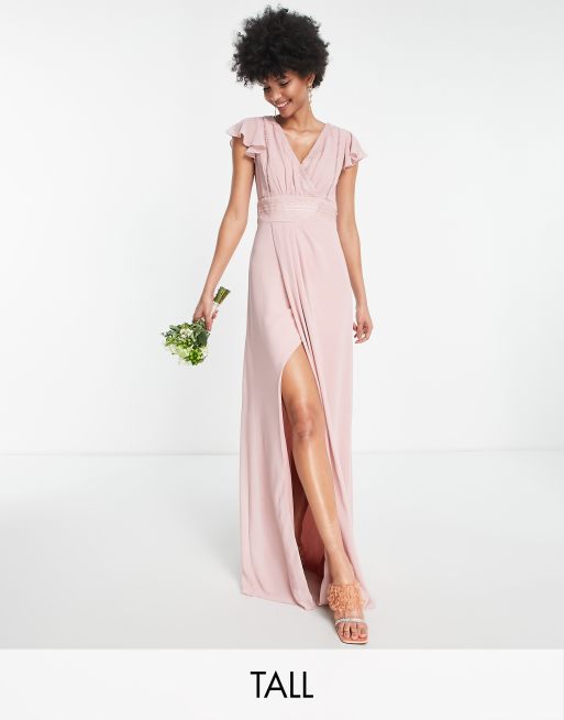 TFNC Tall Bridesmaid Maxikleid mit tiefem Ausschnitt vorne und Schleife hinten in Nerzrosa ASOS Very well made.